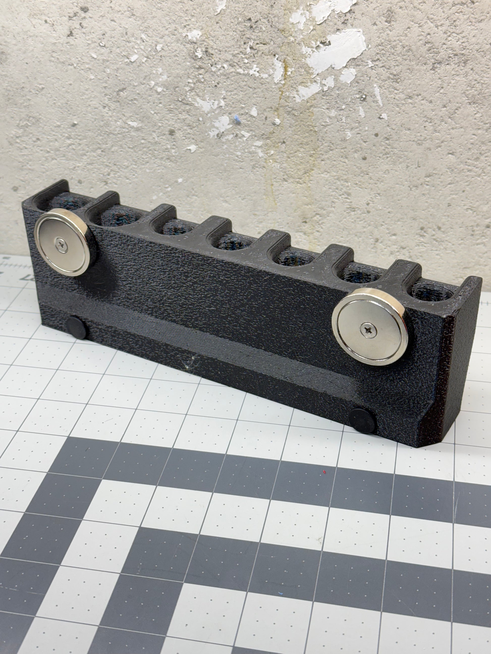 Holds a set of heel bars.